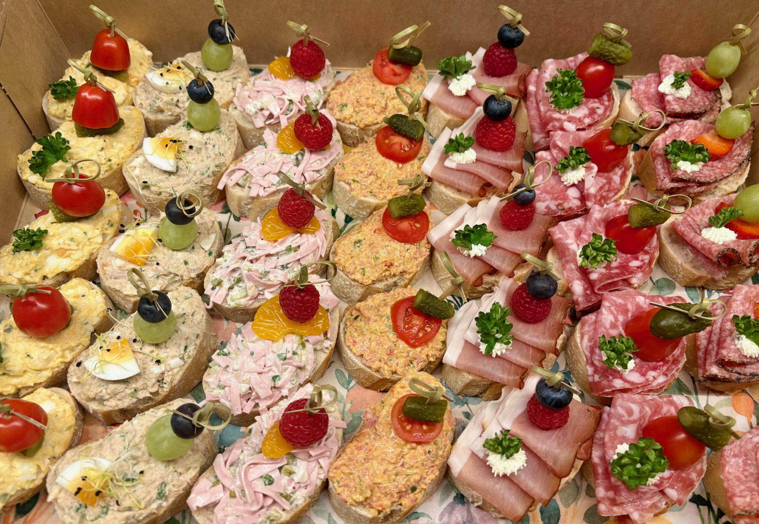 Unsere liebevoll belegten Canapés sind auf jeder Feier ein echter Hingucker. In jeder Box erwartet euch eine bunte Mischung aus Wurst, Käse und hausgemachten Aufstrichen.